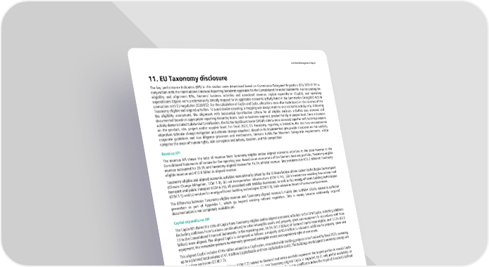 Combined Management Report 11. EU Taxonomy disclosure The key performance indicators (KPI) in this section were determined based on Commission Delegated Regulation (EU) 2021/2178 in conjunction with the International Financial Reporting Standards applicable for the Consolidated Financial Statements. For calculating the eligibility and alignment KPIs, Siemens’ business activities and associated revenue, capital expenditures (CapEx), and operating expenditures (OpEx) were predominantly directly mapped to an applicable economic activity listed in the Commission Delegated Acts in connection with EU regulation 2020/852. For the calculation of CapEx and OpEx, allocations were also made based on the revenue of the Taxonomy-eligible and aligned activities. To avoid double counting, a mapping was always made to one economic activity only. Following the eligibility assessment, the alignment with Substantial Contribution criteria for all eligible business activities was assessed and documented based on appropriate reporting hierarchy levels, such as business-segment, product-family or project level. Once a business activity demonstrated Substantial Contribution, the Do No Significant Harm (DNSH) criteria were assessed together with technical experts on the product, site, project and/or supplier level. For fiscal 2023, EU Taxonomy reporting is limited to the first two environmental objectives (climate change mitigation and climate change adaption). Based on its implemented group-wide structures on risk analysis, corporate guidelines and due diligence processes and mechanisms, Siemens fulfills the Minimum Safeguards requirements, which comprise the areas of human rights, anti-corruption and bribery, taxation, and fair competition. Revenue KPI The revenue KPI shows the ratio of revenue from Taxonomy-eligible and/or aligned economic activities to the total revenue in the Consolidated Statements of Income for the reporting year. Based on an assessment of the Siemens business portfolio, Taxonomy-eligible revenue accounted for 20.3% and Taxonomy-aligned revenue for 16.5% of total revenue. This translates into €15.7 billion in Taxonomy- eligible revenue and €12.8 billion in aligned revenue. Taxonomy-eligible and aligned economic activities were primarily driven by the (i) Manufacture of low-carbon technologies for transport (Climate Change Mitigation, CCM 3.3), (ii) rail transportation infrastructure (CCM 6.14), (iii) Infrastructure enabling low-carbon road transport and public transport (CCM 6.15), all associated with Mobility businesses, as well as (iv) energy-efficient building technologies (CCM 3.5) and (v) services for energy-efficient building technologies (CCM 7.5), both related to Smart Infrastructure businesses. The difference between Taxonomy-eligible revenue and Taxonomy-aligned revenue is mainly due to DNSH criteria related to pollution prevention as part of Appendix C, which go beyond existing national regulation. This is mainly because additionally required documentation is not completely available yet. Capital expenditures KPI The CapEx KPI shows the ratio of CapEx from Taxonomy-eligible and/or aligned economic activities to the total CapEx, reflecting additions (including additions from business combinations) to other intangible assets and property, plant and equipment in accordance with Note 13 to the Consolidated Financial Statements. In the reporting year, 34.5% (€1.3 billion) of Siemens’ CapEx were eligible, and 12.2% (€0.5 billion) were aligned. The aligned CapEx is composed as follows: a majority of €0.4 billion is related to additions to property, plant and equipment, the remainder pertains to internally generated intangible assets and capitalized right-of-use assets. This aligned CapEx includes €116 million related to a CapEx plan, associated with building projects to be finalized by fiscal 2028, summing up to a planned total volume of €1.4 billion (capitalizable and non-capitalizable costs). The buildings are designed to minimize energy use and carbon emissions (CCM 7.7). Acquisition and ownership of buildings (CCM 7.7) related to Siemens’ real estate portfolio represents the largest portion in overall CapEx eligibility. The difference between Taxonomy-eligible CapEx and Taxonomy-aligned CapEx is impacted by (i) only partial availability of information on energy performance certificates for our global portfolio and (ii) energy certificates below the required threshold defined in the Substantial Contribution criteria for the energy efficiency of buildings. Operating expenditures KPI The OpEx KPI shows the ratio of OpEx from Taxonomy-eligible and/or aligned economic activities to total OpEx. The total OpEx comprises direct non-capitalized costs related to research and development, building renovation measures, short-term leases, maintenance and repairs, and any other direct expenditures relating to the day-to-day servicing of assets of property, plant, and equipment per Annex I of the Commission Delegated Regulation (EU) 2021/2178. Accordingly, 12.4% (€0.9 billion) of Siemens’ OpEx were eligible and 8.2% (€0.6 billion) were aligned. The majority of eligible and/or aligned expenditures relate to processes and assets associated with the economic activities described for the revenue KPI: (i) Manufacture of low carbon technologies for transport (CCM 3.3) and (ii) rail transportation infrastructure (CCM 6.14). These two activities account for half of eligible OpEx and the majority of aligned OpEx. This aligned OpEx includes €3 million related to a CapEx plan, associated with building projects to be finalized by fiscal 2028, summing up to a planned total volume of €1.4 billion (capitalizable and non-capitalizable costs). The buildings are designed to minimize energy use and carbon emissions (CCM 7.7). Corresponding to revenue, the difference between Taxonomy-eligible OpEx and Taxonomy-aligned OpEx relates mainly to the documentation of DNSH criteria for pollut