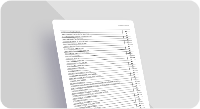 Consolidated Financial Statements Mckit Systems Ltd., Giv'at Shmuel / Israel 100 Siemens Concentrated Solar Power Ltd., Rosh Ha'ayin / Israel 100 Siemens Electronic Design Automation Ltd, Herzilya Pituah / Israel 100 Siemens HealthCare Ltd., Rosh Ha'ayin / Israel 100 7 Siemens Industry Operations Ltd., Rosh Ha'ayin / Israel 100 Siemens Industry Software Ltd., Airport City / Israel 100 Siemens Ltd., Rosh Ha’ayin / Israel 100 Siemens Mobility Ltd., Rosh Ha'ayin / Israel 100 7 Siemens Mobility Operations Ltd., Rosh Ha'ayin / Israel 100 UGS Israeli Holdings (Israel) Ltd., Airport City / Israel 100 7 Acuson Italy S.r.l., Milan / Italy 100 Innomotics S.r.l., Milan / Italy 100 Siemens Healthcare S.r.l., Milan / Italy 100 Siemens Industry Software S.r.l., Milan / Italy 100 Siemens Logistics S.r.l., Milan / Italy 100 Siemens Mobility S.r.l., Milan / Italy 100 Siemens S.p.A., Milan / Italy 100 Varian Medical Systems Italia S.p.A., Segrate / Italy 100 Innomotics Limited Liability Partnership, Almaty / Kazakhstan 100 Siemens Healthcare Limited Liability Partnership, Almaty / Kazakhstan 100 Siemens TOO, Almaty / Kazakhstan 100 VMS Kenya, Ltd, Nairobi / Kenya 100 2 Siemens Industrial Business Co. For Electrical, Electronic and Mechanical Contracting WLL, Kuwait City / Kuwait 49 2 Siemens Large Drives Company for Repairing & Maintenance of Light & Heavy Equipment, W.L.L, Ahmadi / Kuwait 49 Crabtree (Pty) Ltd, Maseru / Lesotho 100 7 Atruvi Invest Management S.à.r.l, Munsbach / Luxembourg 100 FAST TRACK DIAGNOSTICS LUXEMBOURG S.à r.l., Esch-sur-Alzette / Luxembourg 100 TFM International S.A. i.L., Luxembourg / Luxembourg 100 FTD Europe Ltd, Sliema / Malta 100 CTSI (Mauritius) Ltd., Ebene / Mauritius 100 Varian Medical Systems Mauritius Ltd., Ebene / Mauritius 100 Siemens Healthcare SARL, Casablanca / Morocco 100 Siemens Industry Software SARL, Sala Al Jadida / Morocco 100 Siemens S.A., Casablanca / Morocco 100 Castor III B.V., The Hague / Netherlands 100 Chronos B.V., Enschede / Netherlands 100 Mendix Technology B.V., Rotterdam / Netherlands 100 Pollux III B.V., The Hague / Netherlands 100 Siemens Electronic Design Automation B.V., Eindhoven / Netherlands 100 Siemens Finance B.V., The Hague / Netherlands 100 Siemens Financieringsmaatschappij N.V., The Hague / Netherlands 100 Siemens Healthineers Holding III B.V., The Hague / Netherlands 100 Siemens Healthineers Holding IV B.V., The Hague / Netherlands 100 Siemens Healthineers Holding V B.V., The Hague / Netherlands 100 Siemens Healthineers Nederland B.V., The Hague / Netherlands 100 Siemens Industry Software Netherlands B.V., Eindhoven / Netherlands 100 Siemens International Holding B.V., The Hague / Netherlands 100 Siemens Mobility B.V., Zoetermeer / Netherlands 100 Siemens Mobility Holding B.V., The Hague / Netherlands 100 Siemens Nederland N.V., The Hague / Netherlands 100 Sqills Products B.V., Enschede / Netherlands 100 TASS International B.V., Helmond / Netherlands 100 Varian Medical Systems Nederland B.V., Houten / Netherlands 100 Innomotics AS, Oslo / Norway 100 Siemens AS, Oslo / Norway 100 Siemens Healthcare AS, Oslo / Norway 100 47