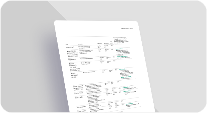 Corporate Governance Statement Memberships in supervisory boards whose establishment is required by law or in comparable domestic or foreign Term controlling bodies of business enterprises Name Occupation Date of birth Member since expires 1 (as of September 30, 2023) 2 Trade Union Secretary of the April 26, January 30, 2028 Hagen Reimer Managing Board of IG Metall 1967 2019 Norbert Reithofer Chairman of the Supervisory Board May 29, January 27, 2023 German positions: (Dr.Ing. Dr.Ing. E. h.) of Bayerische Motoren Werke 1956 2015 Bayerische Motoren Werke Aktien Aktiengesellschaft 3 (until February 9, 2023) gesellschaft, Munich (Chairman) 3, 4 (as of February 9, 2023) Henkel AG & Co. KGaA, Düsseldorf Henkel Management AG, Düsseldorf Kasper Rørsted Member of supervisory boards February 24, February 3, 2025 Positions outside Germany: 1962 2021 3 A.P. MøllerMærsk A/S, Denmark Baroness Director of the London August 13, January 31, 2023 Nemat Shafik School of Economics 1962 2018 (DBE, DPhil) (until February 9, 2023) (as of February 9, 2023) Nathalie Member of supervisory boards July 14, January 27, 2027 German positions: von Siemens 1971 2015 Messer SE & Co. KGaA, (Dr. phil.) Bad Soden am Taunus Siemens Healthcare GmbH, Munich 3 Siemens Healthineers AG, Munich TÜV Süd AG, Munich Positions outside Germany: 3 EssilorLuxottica SA, France 2 Chairman of the Committee September 13, March 1, 2028 Michael Sigmund (until August 31, 2023) of Spokespersons of the Siemens Group 1957 2014 (as of August 31, 2023) and Chairman of the Central Committee of Spokespersons of Siemens AG 2 Chairwoman of the Central Works August 3, October 1, 2028 German positions: Dorothea Simon Council of Siemens Healthcare GmbH 1969 2017 Siemens Healthcare GmbH, Munich Grazia Vittadini Chief Technology Officer September 23, February 3, 2025 German positions: and member of the Executive Team 1969 2021 The Exploration Company GmbH, 3 of RollsRoyce Holdings plc Gilching (until October 17, 2023), 3 Special Advisor of RollsRoyce Holdings plc (since October 17, 2023) Matthias Zachert Chairman of the Board of November 8, January 31, 2027 3 Management of LANXESS AG 1967 2018 2 Member of the Central June 21, January 31, 2023 German positions: Gunnar Zukunft (until February 9, 2023) Works Council of Siemens Industry 1965 2018 Siemens Industry Software GmbH, (as of February 9, 2023) Software GmbH Cologne 1 As a rule, the term of office ends at the conclusion of the (relevant) ordinary Annual Shareholders’ Meeting. 2 Employee representative. 3 Publicly listed. 4 Shareholders’ Committee. 18