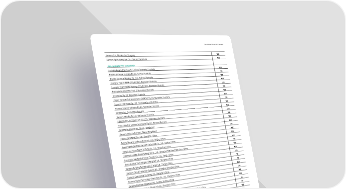 Consolidated Financial Statements Siemens S.A., Montevideo / Uruguay 100 Siemens Rail Automation, C.A., Caracas / Venezuela 100 Asia, Australia (157 companies) Australia Hospital Holding Pty Limited, Bayswater / Australia 100 Brightly Software Australia Pty Ltd, Sydney / Australia 100 Brightly Software Holdings Pty. Ltd., Sydney / Australia 100 7 Exemplar Health (NBH) 2 Pty Limited, Bayswater / Australia 100 Exemplar Health (NBH) Holdings 2 Pty Limited, Bayswater / Australia 100 Exemplar Health (NBH) Trust 2, Bayswater / Australia 100 Innomotics Pty Ltd, Bayswater / Australia 100 Project Ventures Rail Investments (SMWSA) Pty Ltd, Bayswater / Australia 100 Siemens Healthcare Pty. Ltd., Hawthorn East / Australia 100 Siemens Industry Software Pty Ltd, Bayswater / Australia 100 Siemens Ltd., Bayswater / Australia 100 Siemens Mobility Pty Ltd, Melbourne / Australia 100 SIEMENS RAIL AUTOMATION PTY. LTD., Bayswater / Australia 100 Varian Medical Systems Australasia Pty Ltd., Belrose / Australia 100 Siemens Healthcare Ltd., Dhaka / Bangladesh 100 Siemens Industrial Limited, Dhaka / Bangladesh 100 7 Acuson (Shanghai) Co., Ltd., Shanghai / China 100 Beijing Siemens Cerberus Electronics Ltd., Beijing / China 100 Green Matrix (Suzhou) Network Technology Co., Ltd., Suzhou / China 100 Hangzhou Alicon Pharm Sci & Tec Co., Ltd., Hangzhou / China 100 Innomotics Large Drives (Shanghai) Co., Ltd., Shanghai Pilot Free Trade Zone / China 100 7 Innomotics Mechanical Drives (Tianjin) Co., Ltd., Tianjin / China 100 Scion Medical Technologies (Shanghai) Ltd., Shanghai / China 100 Siemens Building Technologies (Tianjin) Ltd., Tianjin / China 70 Siemens Circuit Protection Systems Ltd., Shanghai, Shanghai / China 75 Siemens Commercial Factoring Ltd., Shanghai / China 100 Siemens Digital Technology (Shenzhen) Co., Ltd., Shenzhen / China 100 Siemens Electrical Apparatus Ltd., Suzhou, Suzhou / China 100 Siemens Electrical Drives (Shanghai) Ltd., Shanghai / China 100 Siemens Electrical Drives Ltd., Tianjin / China 85 Siemens Electronic Design Automation (Shanghai) Co., Ltd., Shanghai Pilot Free Trade Zone / China 100 Siemens Factory Automation Engineering Ltd., Beijing / China 100 Siemens Finance and Leasing Ltd., Beijing / China 100 Siemens Financial Services Ltd., Beijing / China 100 Siemens Healthcare Diagnostics Manufacturing Ltd., Shanghai, Shanghai / China 100 Siemens Healthineers Diagnostics (Shanghai) Co., Ltd., Shanghai / China 100 Siemens Healthineers Digital Technology (Shanghai) Co., Ltd., Shanghai / China 100 Siemens Healthineers Ltd., Shanghai / China 100 Siemens Industrial Automation Products Ltd., Chengdu, Chengdu / China 100 Siemens Industry Software (Beijing) Co., Ltd., Beijing / China 100 Siemens Industry Software (Shanghai) Co., Ltd., Shanghai / China 100 Siemens Intelligent Signalling Technologies Co. Ltd., Foshan, Foshan / China 60 Siemens International Trading Ltd., Shanghai, Shanghai / China 100 Siemens Large Drives Equipment (Tianjin) Ltd., Tianjin / China 85 Siemens Logistics Automation Systems (Beijing) Co., Ltd, Beijing / China 100 Siemens Ltd., China, Beijing / China 100 Siemens Manufacturing and Engineering Centre Ltd., Shanghai / China 51 Siemens Mechatronics Technology JiangSu Ltd., Yizheng / China 100 Siemens Medium Voltage Switching Technologies (Wuxi) Ltd., Wuxi / China 85 Siemens Mobility Electrification Equipment (Shanghai) Co., Ltd., Shanghai / China 51 Siemens Mobility Equipment (China) Co., Ltd, Shanghai Pilot Free Trade Zone / China 100 Siemens Mobility Rail Equipment (Tianjin) Ltd., Tianjin / China 100 53